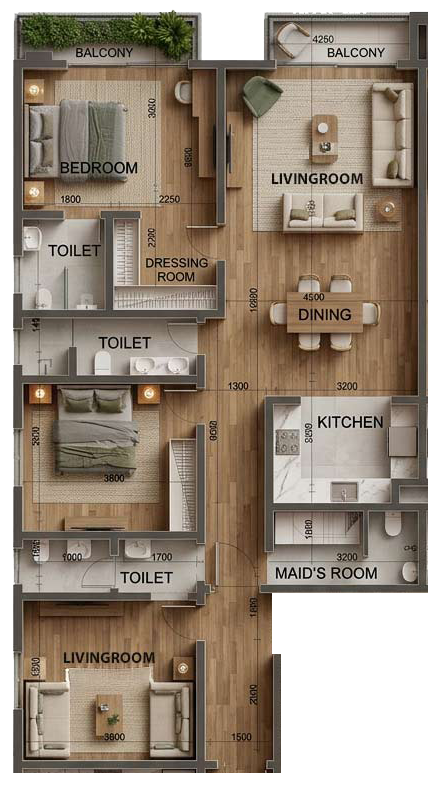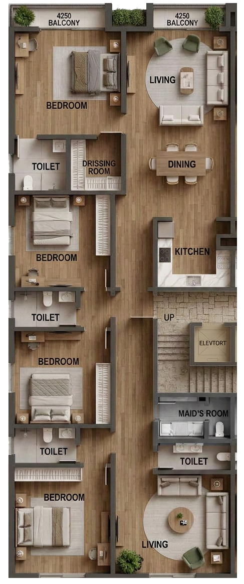 تتمتع الوحدات الأمامية بإطلالات بانورامية استثنائية. وتتميز جميع الوحدات بنماذج متنوعة ذات توزيع هندسي مصمم بخبرة لضمان أقصى درجات الخصوصية والمساحة الواسعة ، مما يعكس تجربة سكنية راقية.