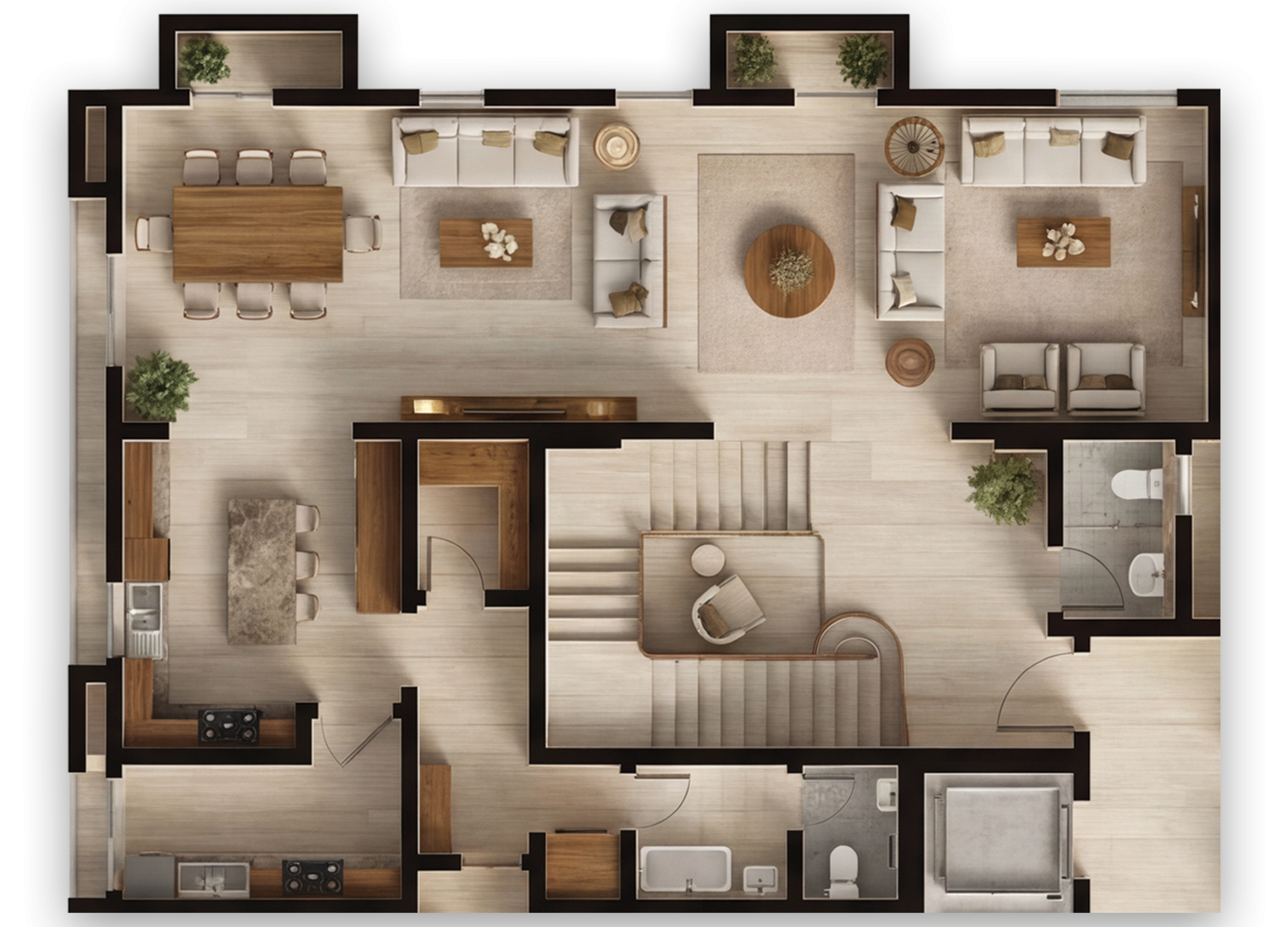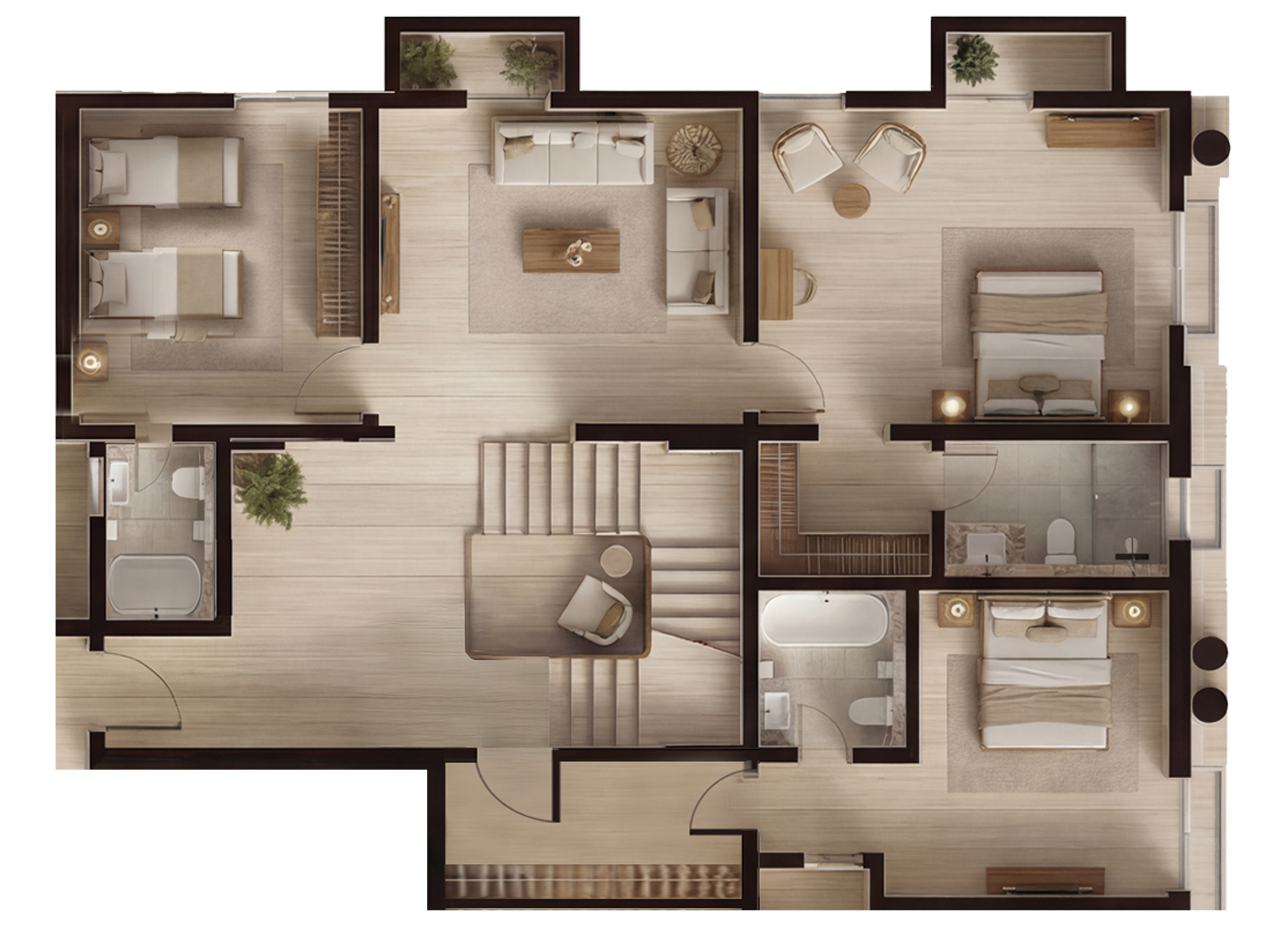 يقــدّم المــشروع 8 فــلل بنتهــاوس و 2 روفــات فـــاخرة بتصـاميم كلاسيــكي عصري، تم تنفيذها باستخدام أحدث تقنيات البناء” Post-Tension ” لضــمان أعلى معايير الجودة والاستدامة. تتميز كل فيلا بمساحات رحبــة وتوزيعــات مدروسة لتعزيــز الــراحة والخــصوصية وتشــمل مرافق متكاملة مثل مسبح حديث، ولاونج فـــاخر وصـالة رياضيـة مجهّزة، لتوفير أسلوب حيــاة متكامــل يجــمع بين الرفاهية والعملية في كل التفاصيل.